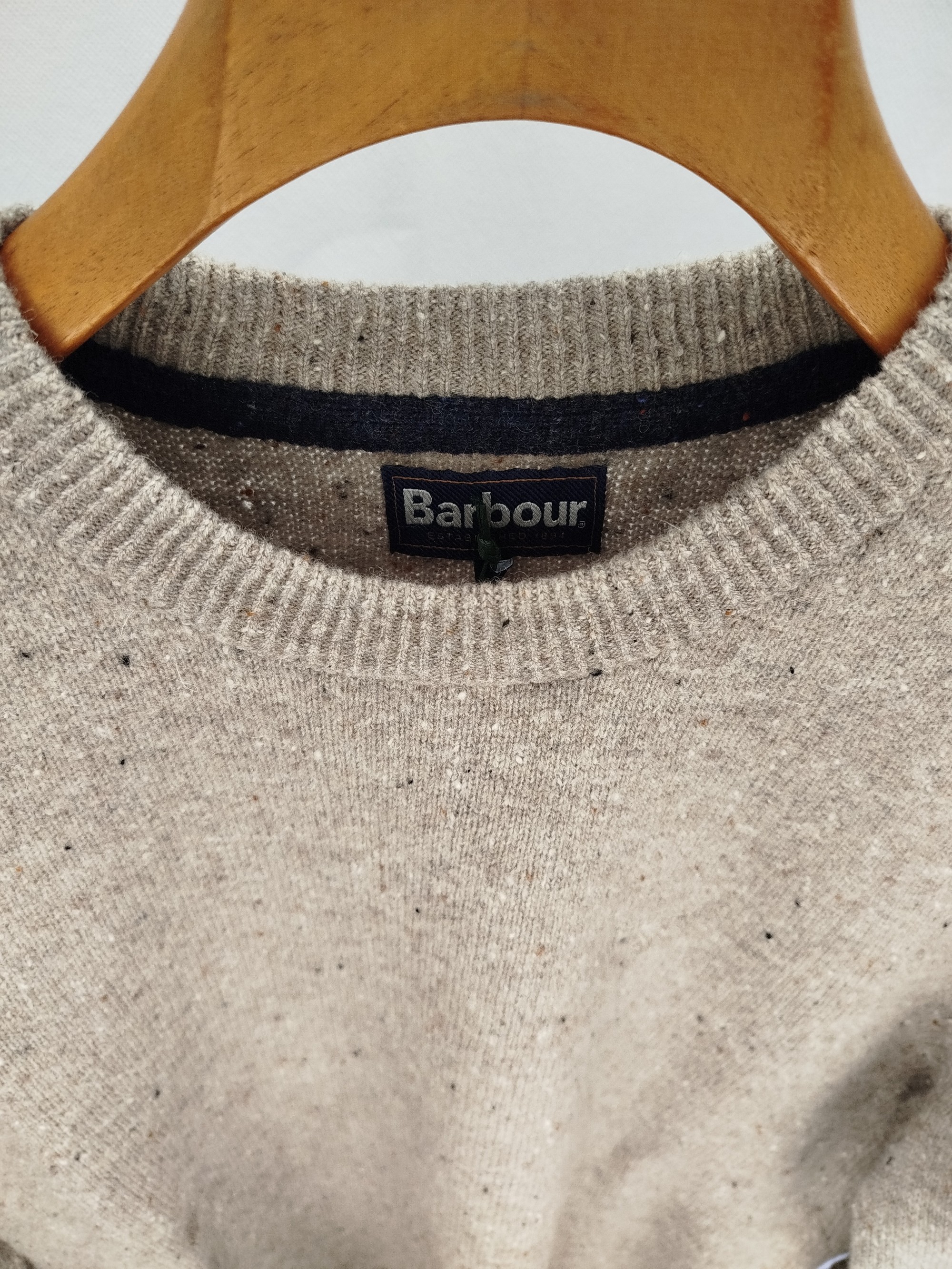 Aggiungi un tocco di stile alla tua collezione con questo maglione Barbour in lana colore Stone melange . Il suo design semplice ma sofisticato è perfetto per ogni occasione, offrendo comfort e calore durante le fredde giornate. Caratterizzato da una texture morbida e una tonalità grigia chiara, rende ogni outfit elegante e raffinato.